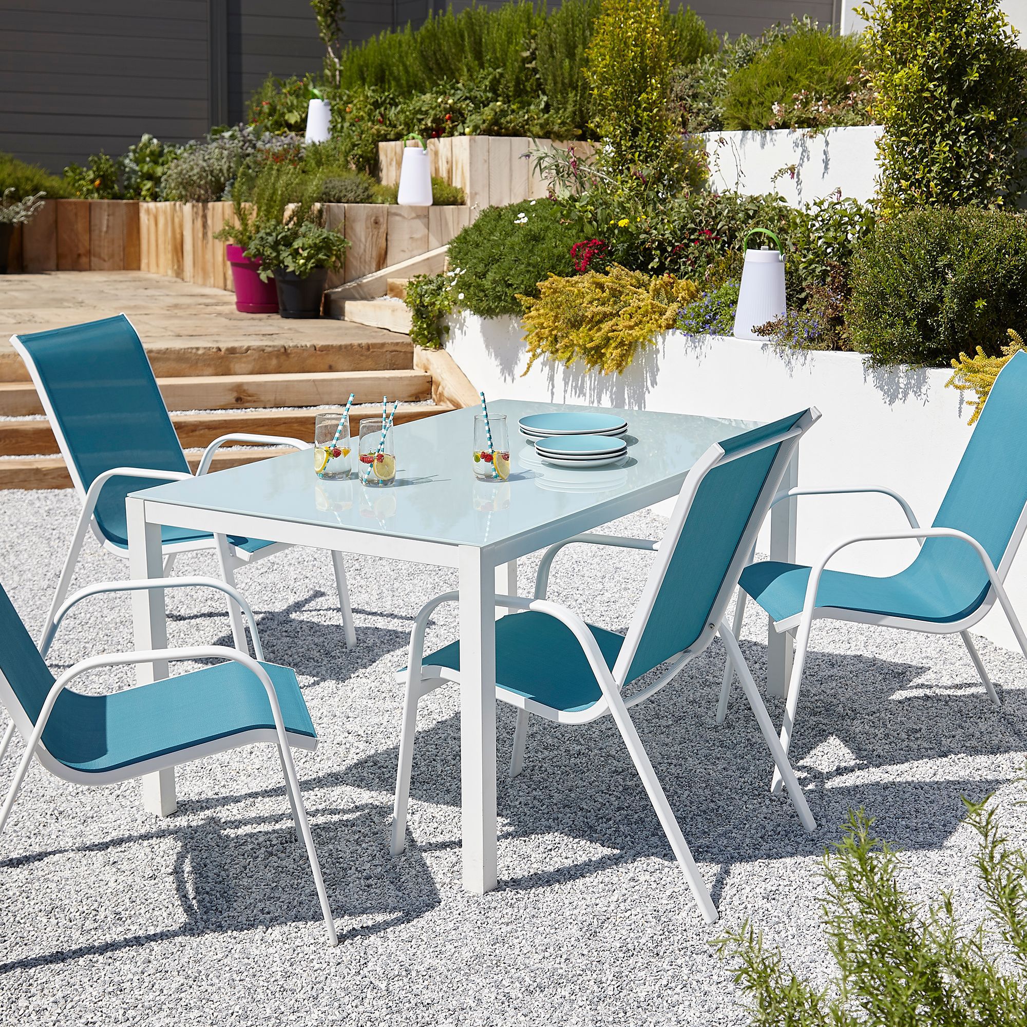 Can be kept outside all year long as they are waterproof and are stackable for easy storage. Four metal, waterproof blooma janeiro garden chairs perfect for dining or sitting outside in your garden. 5% coupon applied at checkout save 5% with coupon. If you're throwing a sophisticated garden party, gathering the family for a bbq, or putting your feet up in your own little nook, you'll find the perfect garden chairs at homebase. Whether you're looking for plastic garden chairs, cosy pods, classic deck chairs or a full furniture set, there's something for you.